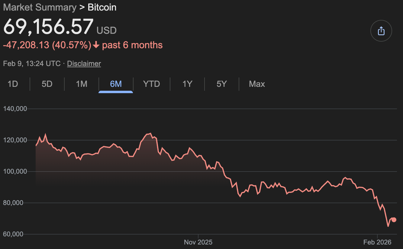 Bitcoin fell below $70,000 for the first time since November 2024, giving back all the gains since Trump wont the election.