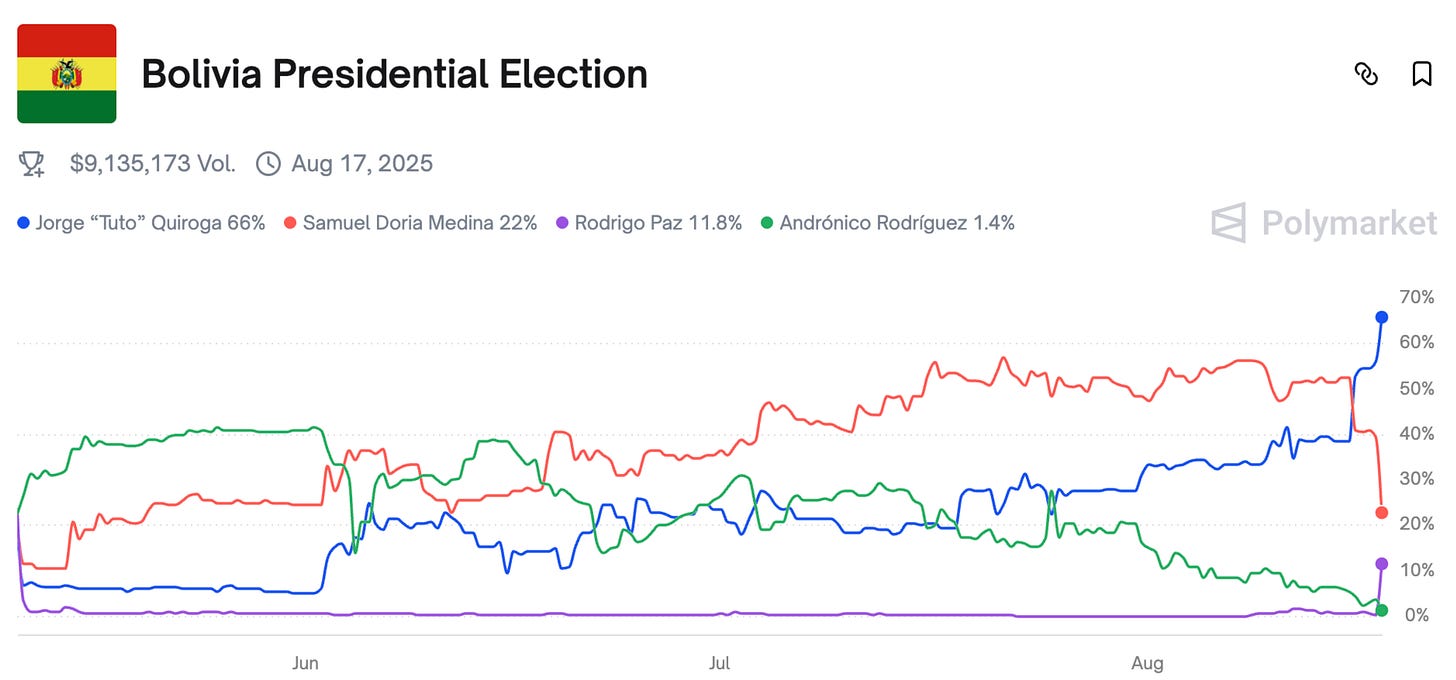 Moving to Bolivia, I was wise to opt out of betting on the election. As the results rolled in, it turned out that Rodrigo Paz, who was on the market in low single digits just before Sunday, won with both favorites.