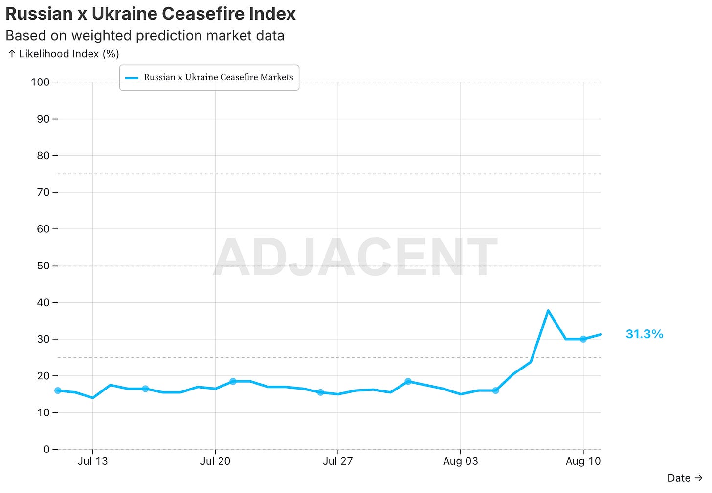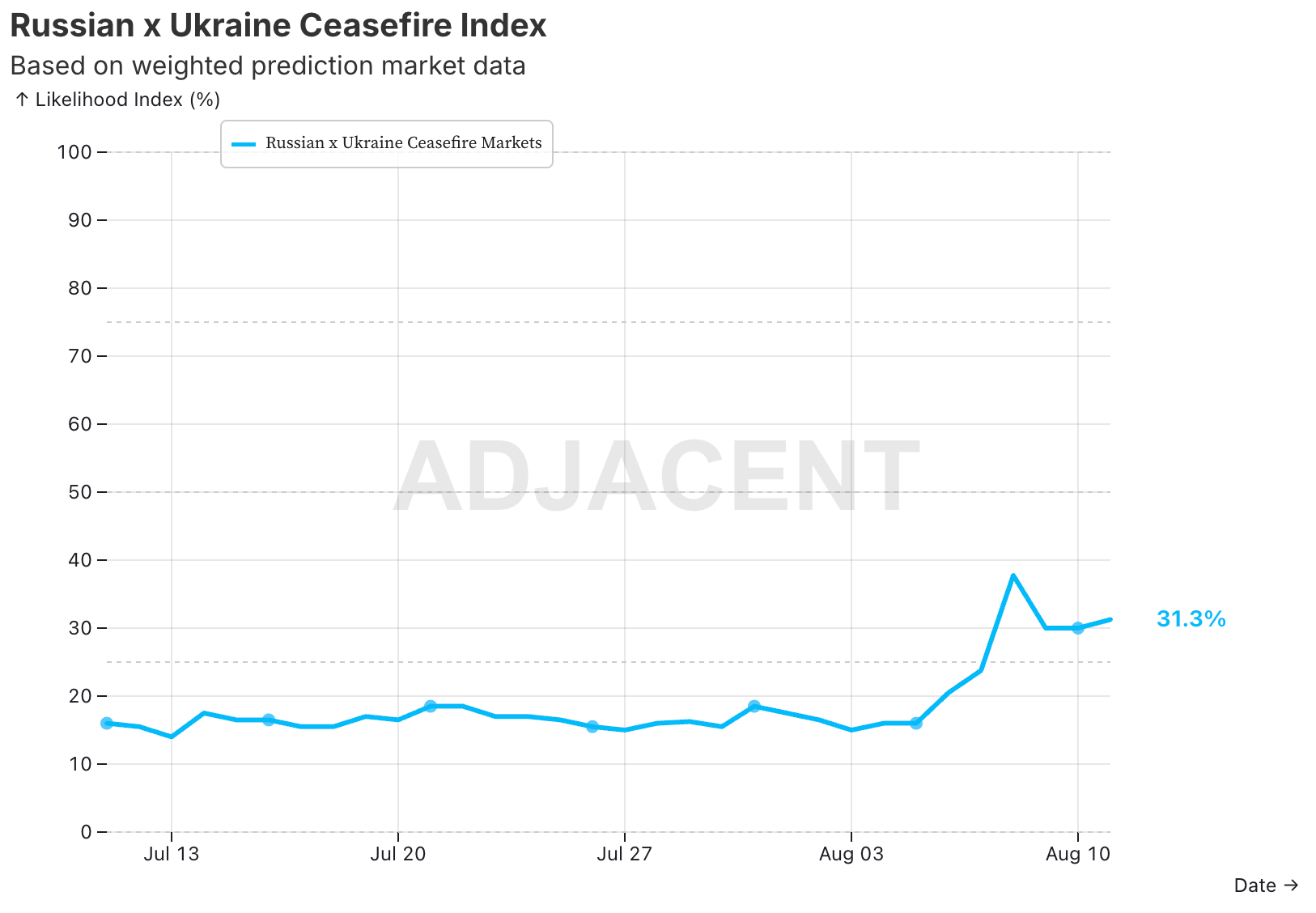 In the meantime ceasefire odds are on the rise, but at 31% weighted it is still quite a long-shot.