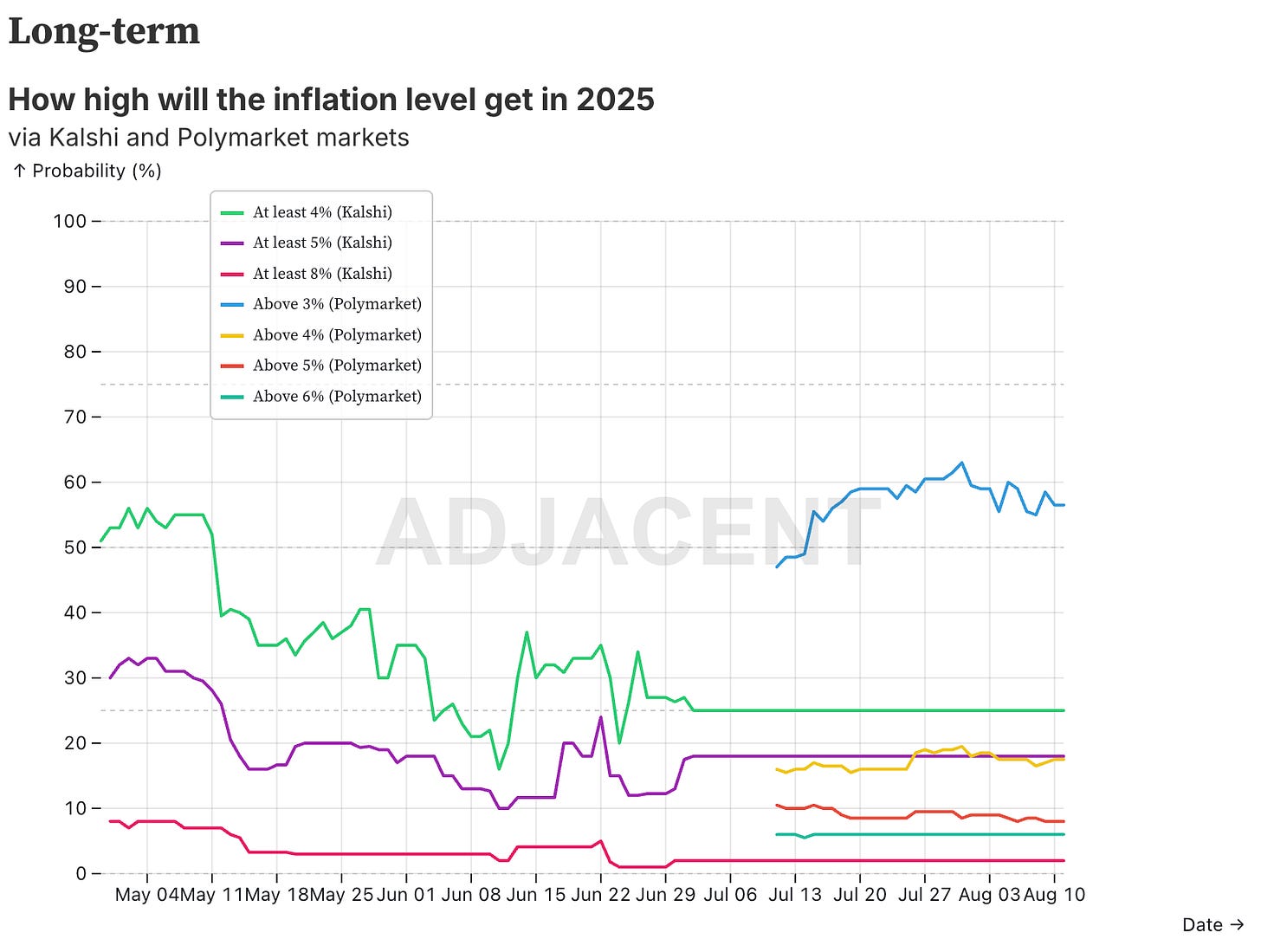 Kalshi data refuses to properly work, but based on Polymarket, expectations are for over 3% inflation by the end of the year.